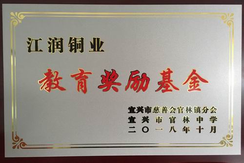 宜興市官林中學80周年校慶活動即日舉行,官林中學4只冠名基金揭牌儀式同時舉行。江潤銅業總經理駱偉棟參加了此次盛會,向母校捐贈200萬元設立教育獎勵基金。江潤銅業與三川投資、永友糧油、江南電纜一起凝聚力量,致力推動教育事業發展。