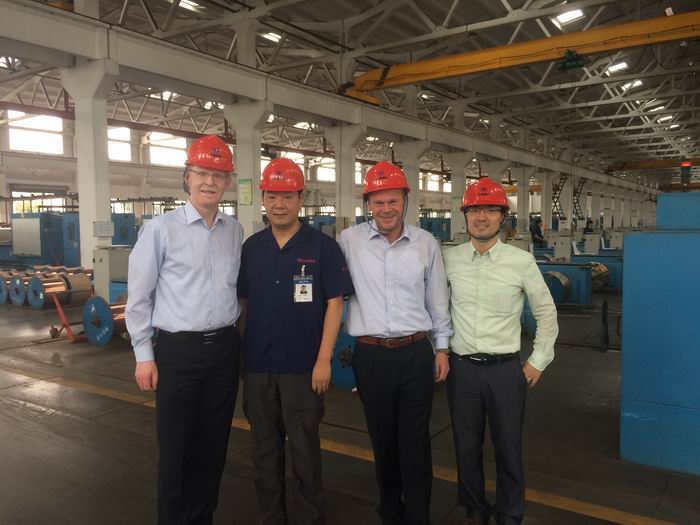 2015年9月24日,萊尼集團(tuán)亞太區(qū)總裁JerryCUMMINS先生、萊尼德國總部采購高級副總裁RichardPAGLIA先生以及中國事業(yè)區(qū)戰(zhàn)略采購總監(jiān)韓軍先生一行三人來江潤銅業(yè)考察交流,公司總經(jīng)理駱偉棟先生熱情接待了萊尼客人一行。 江潤銅業(yè)與萊尼集團(tuán)合作十余年之久,由于在復(fù)合導(dǎo)體領(lǐng)域為其提供了多種解決方案,降低了生產(chǎn)成本,深受其好評,雙方建立了長期戰(zhàn)略性合作伙伴關(guān)系。通過本次訪問,江潤銅業(yè)先進(jìn)的生產(chǎn)設(shè)備、優(yōu)質(zhì)的產(chǎn)品及一流的員工隊伍給客人留下了深刻的印象,雙方表示將在目前良好合作的基礎(chǔ)上進(jìn)一步加強(qiáng)合作,實現(xiàn)互惠共贏。