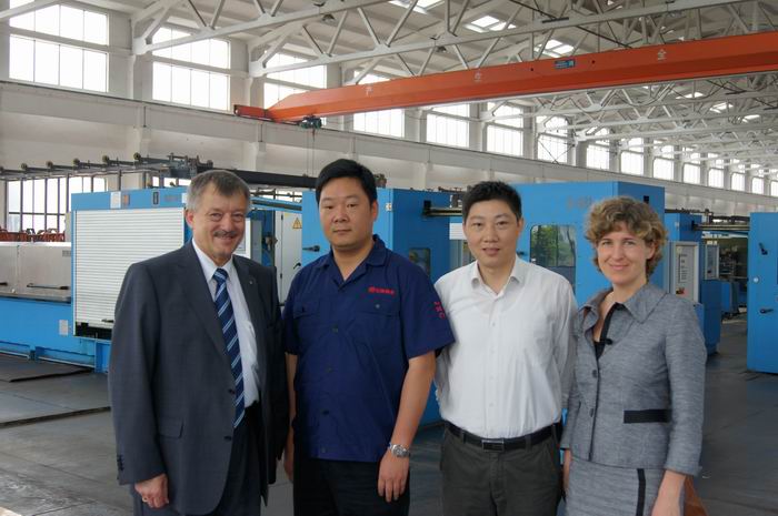注:尼霍夫機(jī)械制造有限公司創(chuàng)始于1875年,作為歷史悠久的電纜設(shè)備制造廠商,在拉線、電鍍和束線等領(lǐng)域均處于世界領(lǐng)先地位。NIEHOFF與江潤(rùn)銅業(yè)之間的合作源遠(yuǎn)流長(zhǎng),始于九十年代初,國(guó)內(nèi)首家引進(jìn)了M85高速連續(xù)退火大拉設(shè)備,因?yàn)樗募夹g(shù)、品質(zhì)、服務(wù)以及德國(guó)工業(yè)的嚴(yán)謹(jǐn)作風(fēng),促使我們從2000年起分批引進(jìn)了120多臺(tái)套系列拉線、電鍍錫、電鍍銀、束線等先進(jìn)裝備。二十年的歷程,二十年的風(fēng)雨,我們攜手同行、共同成長(zhǎng)。新型號(hào)設(shè)備的試用、使用意見(jiàn)反饋、改進(jìn)完善,我們之間一直在進(jìn)行著技術(shù)交流和互動(dòng)。2004年,我們引進(jìn)了國(guó)內(nèi)首條WPT4000鍍錫生產(chǎn)線,經(jīng)雙方工程師的通力合作,使92年產(chǎn)M85和新鍍錫機(jī)聯(lián)動(dòng)生產(chǎn)成功,創(chuàng)造了亞洲地區(qū)首條拉線、電鍍聯(lián)動(dòng)生產(chǎn)線。